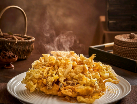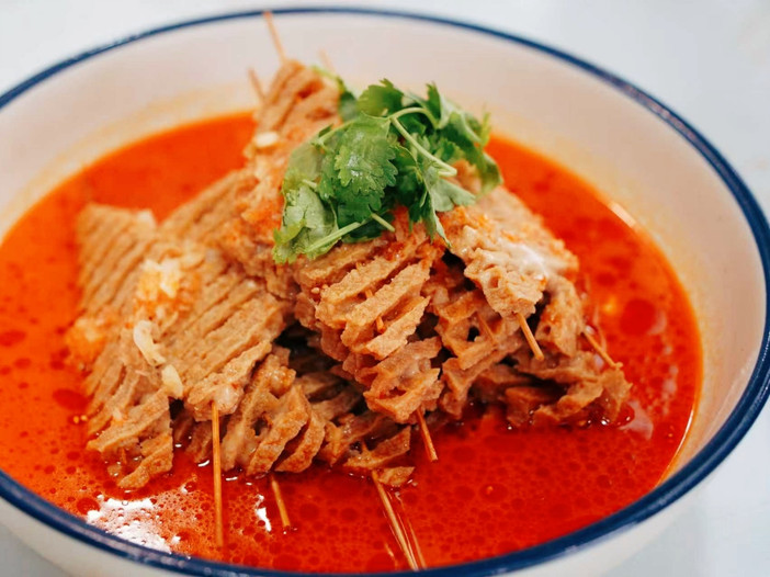 这份诚意满满的四人餐,每道菜品都藏着晋地饮食的精髓。作为硬菜担当的香酥鸡,精选新鲜鸡肉经多道工序腌制入味,裹薄糊现炸至金黄酥脆,外皮咔嚓作响,内里肉质鲜嫩多汁,蘸取椒盐更添咸香层次。麻辣豆腐串则带着浓郁的街头烟火气,豆腐串吸饱秘制麻辣卤汁,软嫩中带着嚼劲,麻、辣、鲜、香交织,一口唤醒味蕾。