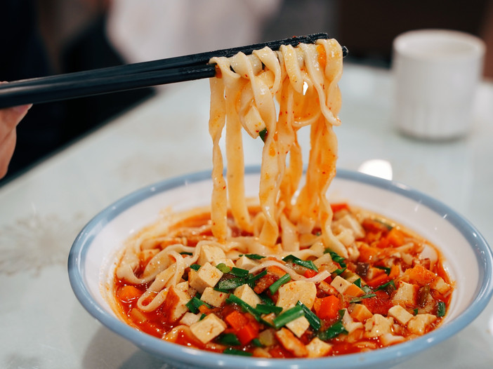 甜食爱好者不可错过的脆皮风葫芦,外壳薄脆如琉璃,内里软糯香甜,咬下瞬间甜汁四溢,中和了咸鲜菜品的厚重感。套餐压轴的农家手工臊子面,遵循晋地传统做法,手工擀制的面条薄筋光,搭配五花肉慢炒的鲜香臊子,酸香开胃、汤汁滚烫,一碗下肚通体舒泰,完美诠释了山西面食的独特魅力。