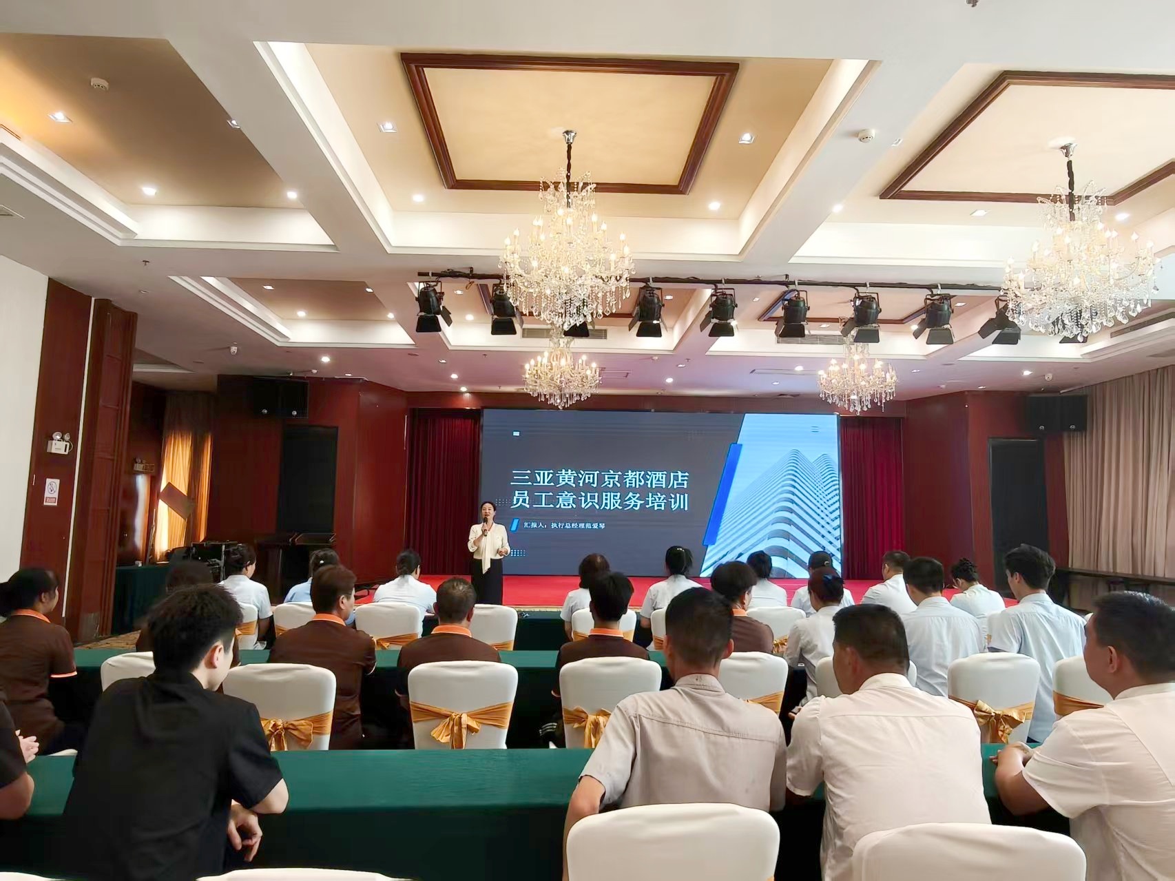 为进一步夯实酒店服务品质,提升全员专业素养与服务能力,塑造优质品牌形象,三亚黄河京都酒店组织开展全员服务意识专项培训。本次培训由酒店执行总经理范爱琴亲自主讲,围绕服务核心要义、行为规范、实操技能等多维度展开系统授课,旨在让服务理念深植人心,让服务标准落地执行,以更专业、更贴心、更高效的服务,为宾客打造高品质的入住体验。